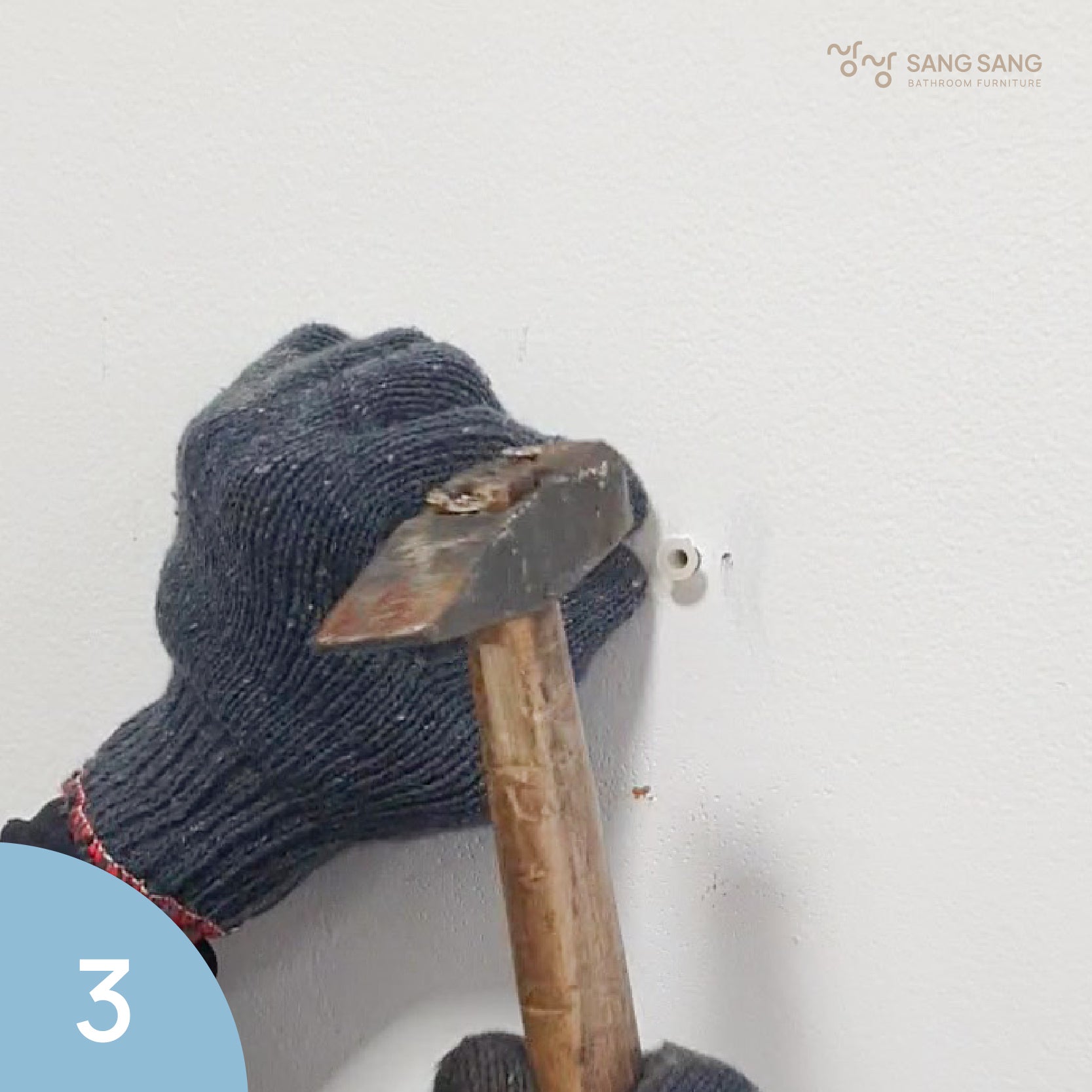3. Put the drywall anchor into the hole with the hammer. 망치로 칼브럭을 뚫은 구멍에 끼워 넣습니다.