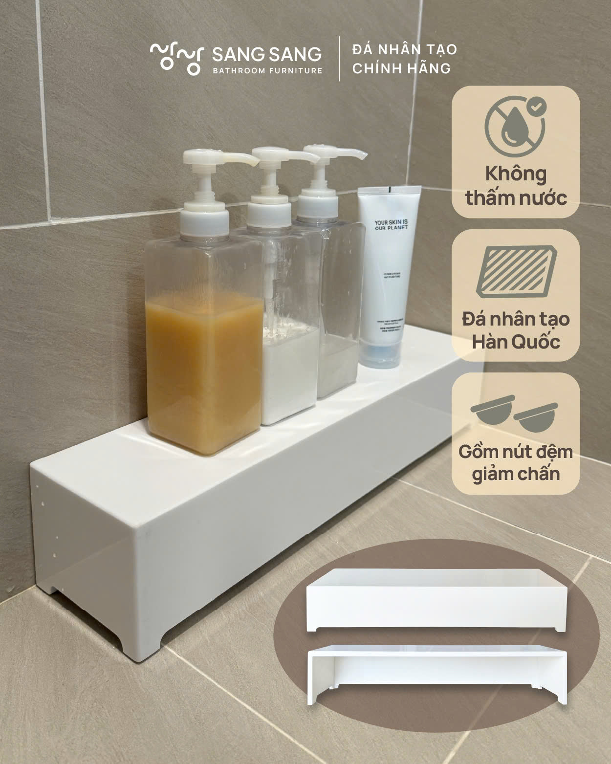 [V-LEVEL-500] Kệ sàn phòng tắm đá nhân tạo Hàn Quốc Sang Sang